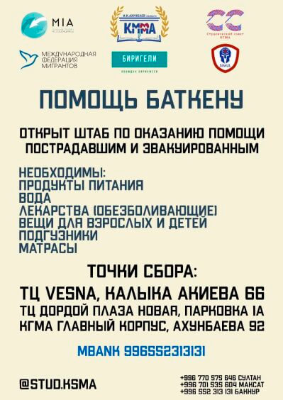 Cтуденческий Совет КГМА открыл штаб по оказанию помощи пострадавшим и эвакуированным. Необходимы продукты питания, медикаменты, средства личной гигиены и т.д