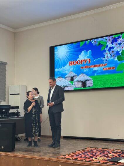 Праздничное мероприятие торжественно открыла декан факультета Табалдиева Ч.Т, заведующий кафедрой управление и экономики фармации и технологии лекарственных средств, профессор Чолпонбаев К.С. подробно рассказал студентам об истории праздника Нооруз, а заведующий кафедрой фармакогнозии и химии лекарственных средств доцент Мураталиева А.Д. отметила, что праздник Нооруз демонстрирует стремление к миру, единству и процветанию и призывала студентов любить, уважать великие традиции своего народа и быть патриотами своей страны. С приветственной речью и словами благодарности выступил гость КГМА, заведующий кафедрой фармацевтической технологии фармацевтического факультета Базельского университета профессор, доктор Йорг Хувылер.