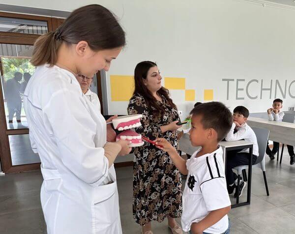 25 мая 2023 года под руководством кафедры детской стоматологии были проведены профилактические мероприятия студентами стоматологического факультета Медакадемии Кыргызстана им.И.К.Ахунбаева и Кыргызско-Российского Славянского университета им.Б. Ельцина среди учащихся в «ЭКО-школе Данек».