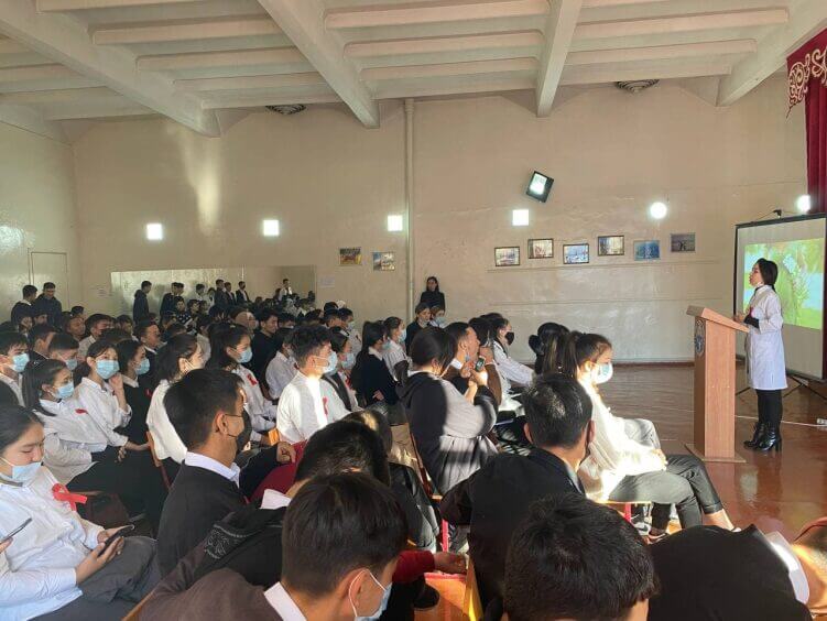 1-декабря 2021-года под руководством ассистента кафедры дерматовенерологии КГМА им. И.К.Ахунбаева Замирбековой К.З студенты 4 курса 35 группы лечебного факультета #2 провели просветительное мероприятие ко «Всемирному дню борьбы со СПИДом в школах №46 и №16 города Бишкек.