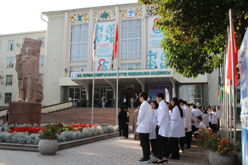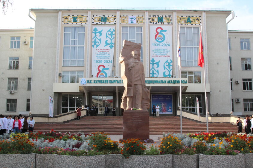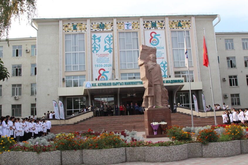Сегодня, 25 сентября 2024 года в Кыргызской государственной медицинской академии им.И.К.Ахунбаева состоялась ежегодная линейка, посвященная 116-летию со дня рождения выдающегося хирурга и государственного деятеля Исы Коноевича Ахунбаева. В честь этого проректора возложили цветы к его памятнику, установленном в сквере главного корпуса вуза.