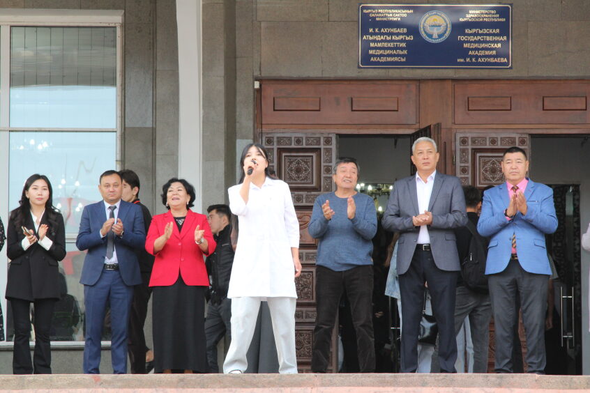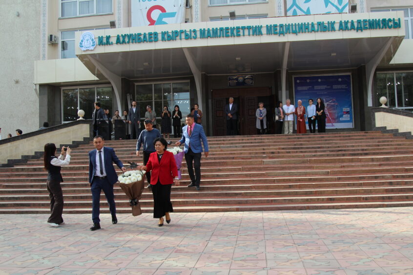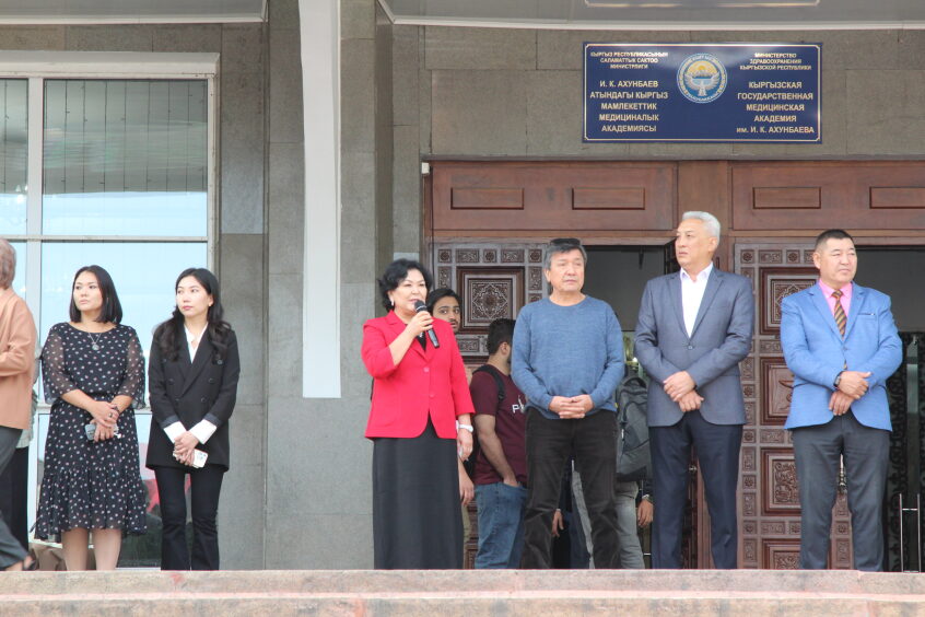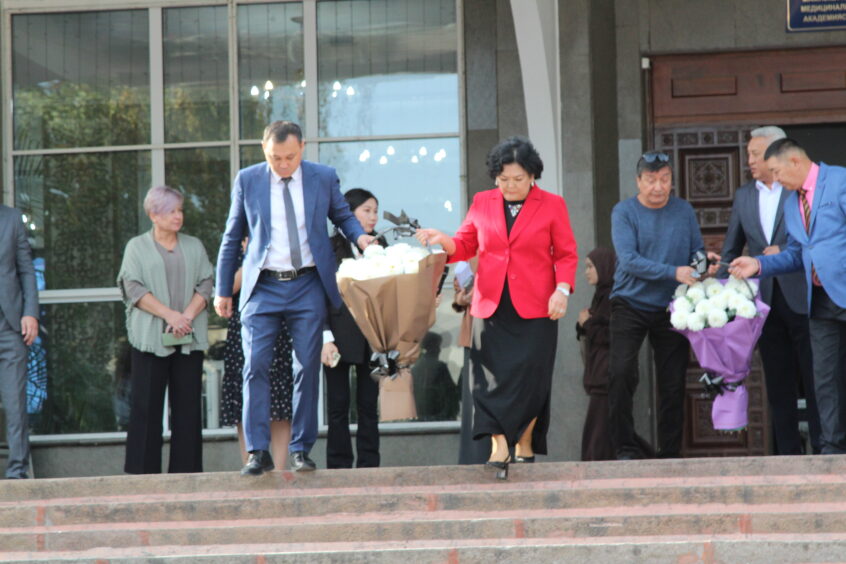 Перед собравшимися выступила проректор по государственному языку и воспитательной работе Гульсункан Жунушова. Она подчеркнула неоценимую роль Исы Коноевича в развитии медицины, высшего медицинского образования в республике.