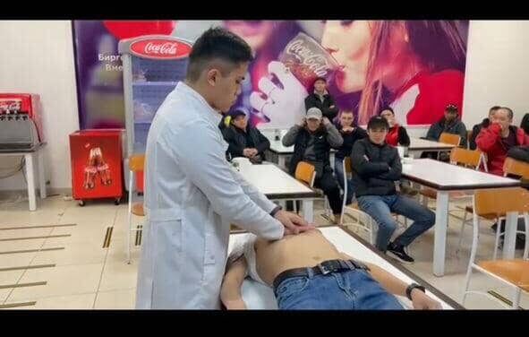 11 марта 2025 года ассистент кафедры общей гигиены Бейшеева Асел Кубанычбековна совместно со студентами 3 курса, 39 группы факультета Лечебное дело, провели обучающий тренинг для сотрудников завода "Кока Кола Бишкек Боттлерс". В ходе тренинга студенты продемонстрировали алгоритм проведения СЛР, техники наложения повязок, методы остановки кровотечений и др.