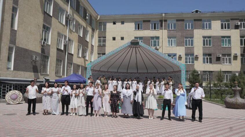 Кыргызская государственная медицинская академия им. И. К. Ахунбаева 8 мая 2024 года провела торжественное мероприятие, приуроченное к празднованию 80-йгодовщины окончания Великой Отечественной войны. На входе в летнюю площадку гостям вручали Георгиевские ленточки как символ памяти и уважения к героизму народа.