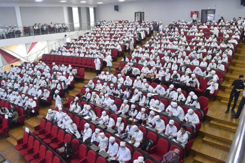 22 по 23 октября 2021 года в новом Конференц-холле состоялось «Посвящение в студенты» КГМА имени И.К. Ахунбаева. На нём с напутственными словами первокурсникам выступили Герой Кыргызстана Миталип Мамытов, академик, д.м.н., профессор Дуйше Кудаяров, член-корреспондент НАН КР Рахатбек Оморов, ректор Медакадемии Индира Кудайбергенова профессоры и деканы.