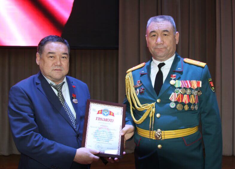 зав.военной кафедрой КММА, полковник медицинской службы запаса Курбанбек Калилов (нагрудной знак «Мен суйгон мугалим) , завуч кафедры военно-медицинской подготовки и экстремальной медицины, полковник медицинской службы запаса Павел Тен (нагрудной знак («Где мы, там победа»), преподаватели военной кафедры: полковник Эсеналы Эргешов, полковник Мырзабек Амракунов, гвардии полковник запаса Алмазбек Карымбаев, полковник медицинской службы запаса Жениш Шабданбеков (орден «Ата Мекенге кызмат»), завуч кафедры военно-медицинской подготовки и экстремальной медицины Павел Тен (нагрудной знак «Участник Баткенской войны»).