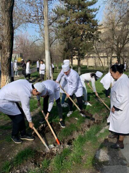 Следует отметить, сотрудники и студенты КГМА им. И.К.Ахунбаева активно участвуют по саночистке, благоустройству и озеленению территорий.