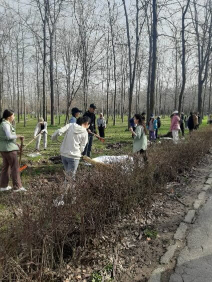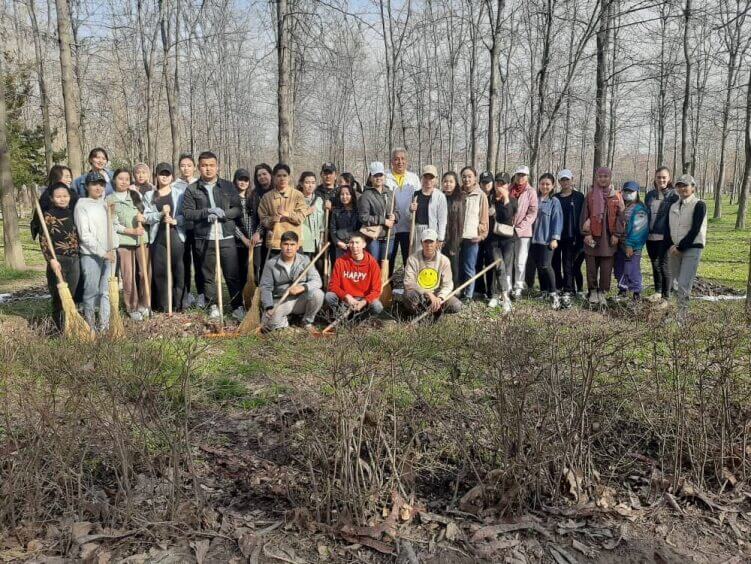 Также, студенты во главе с преподавателями дружно очистили территории ореховой рощи. Всего в мероприятии приняли участие примерно 40 студентов.