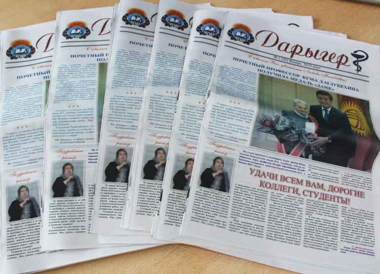 Вышел в свет первый номер  ежеквартальной вузовской многотиражки «Дарыгер» («Врач») Медакадемии Кыргызстана имени И.К. Ахунбаева за 2019 год. В издании опубликованы материалы о семейной медицине,   Медцентре  КГМА,  а также статьи и стихи студентов.