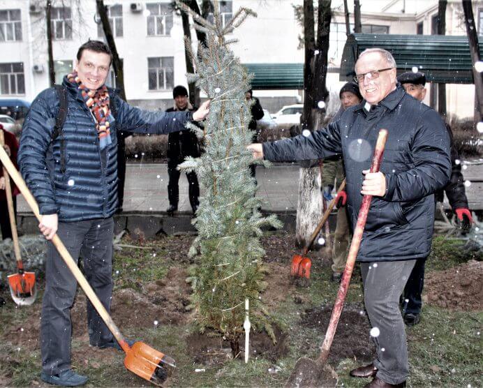 Гости из Российской Федерации посадили ели на аллее КГМА