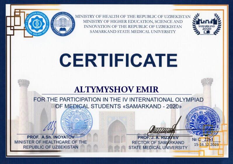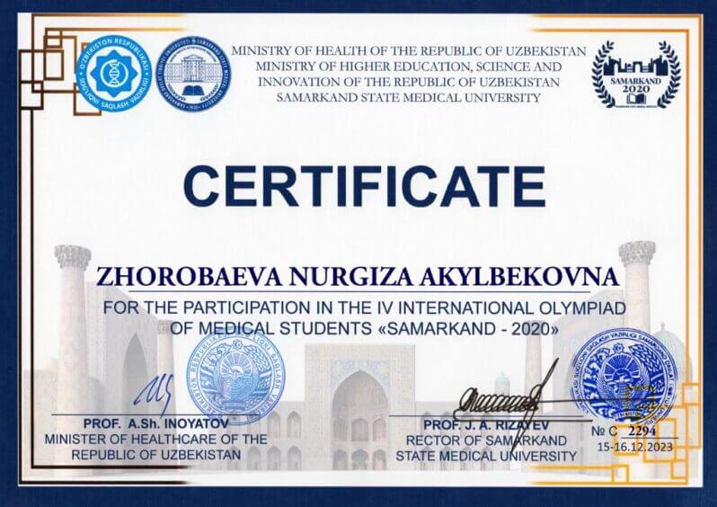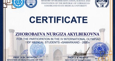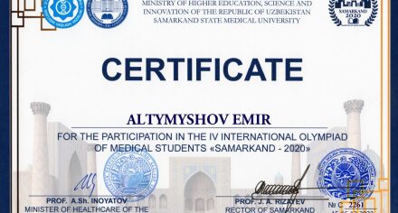 IV МЕЖДУНАРОДНАЯ ОЛИМПИАДА ДЛЯ СТУДЕНТОВ МЕДИЦИНСКИХ ВУЗОВ «САМАРКАНД – 2020»