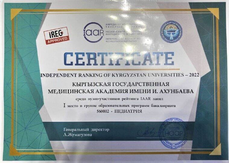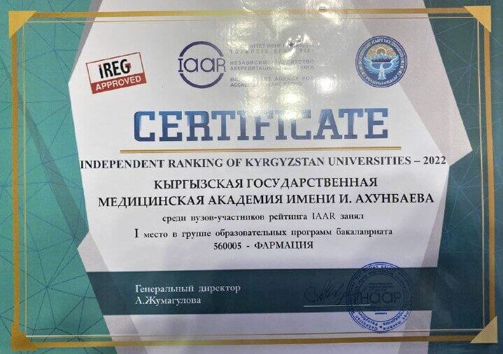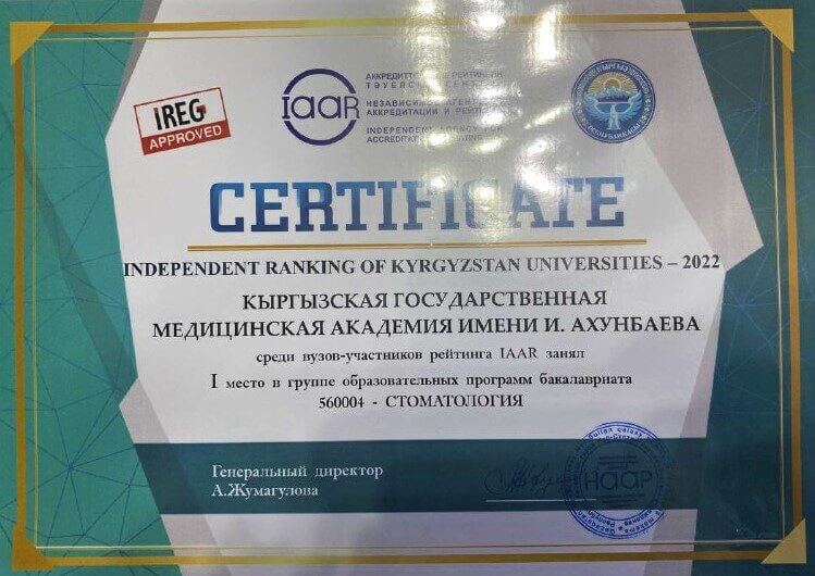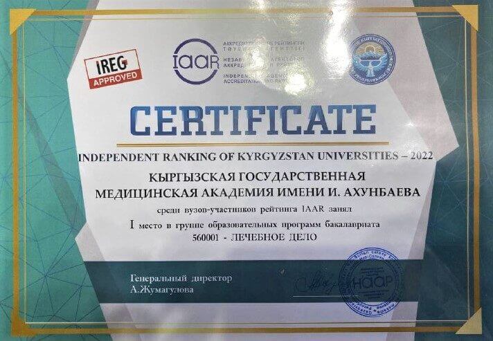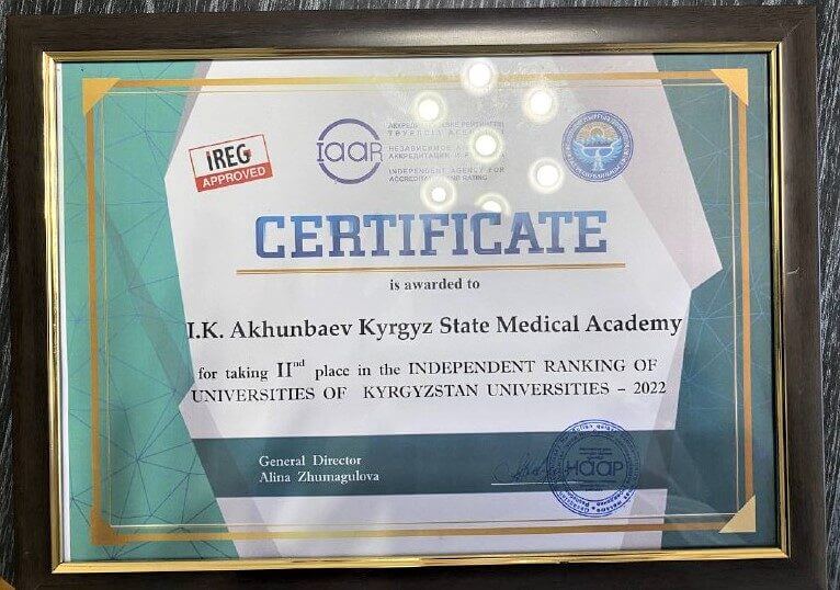 КГМА им.И.К.Ахунбаева заняла первые места в Независимом Рейтинге ВУЗов КР – 2022