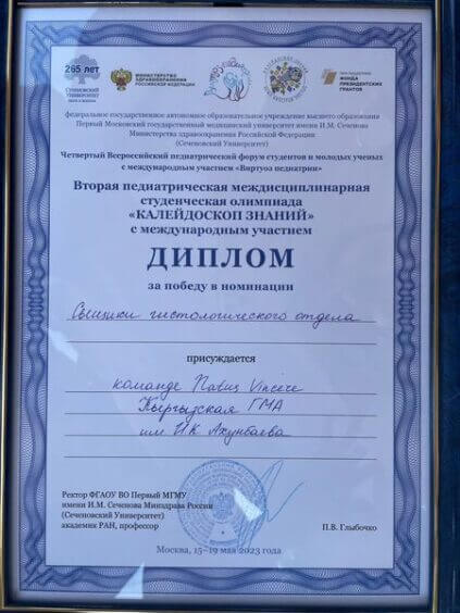 Команда «Natus Vincere КГМА дипломом ПМГМУ им.Сеченова в номинации «Сыщики гистологического отдела» 29 Мая 2023 0 Поделиться записью: