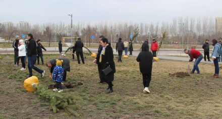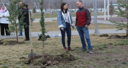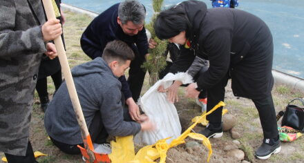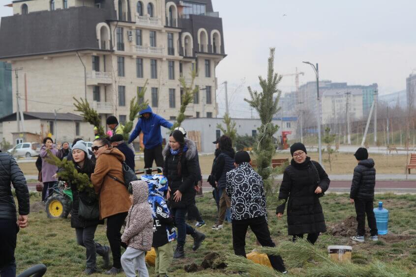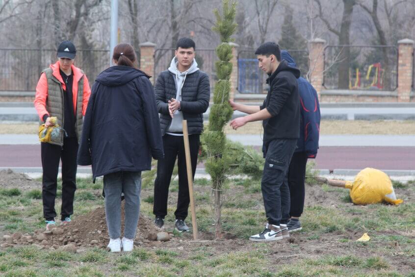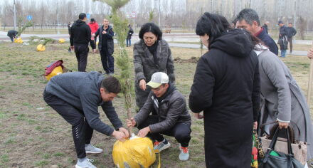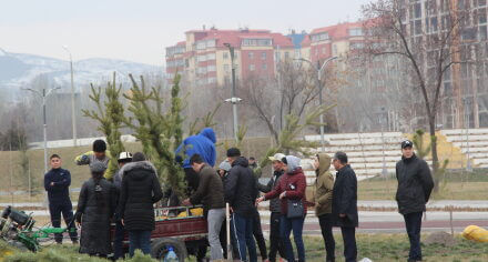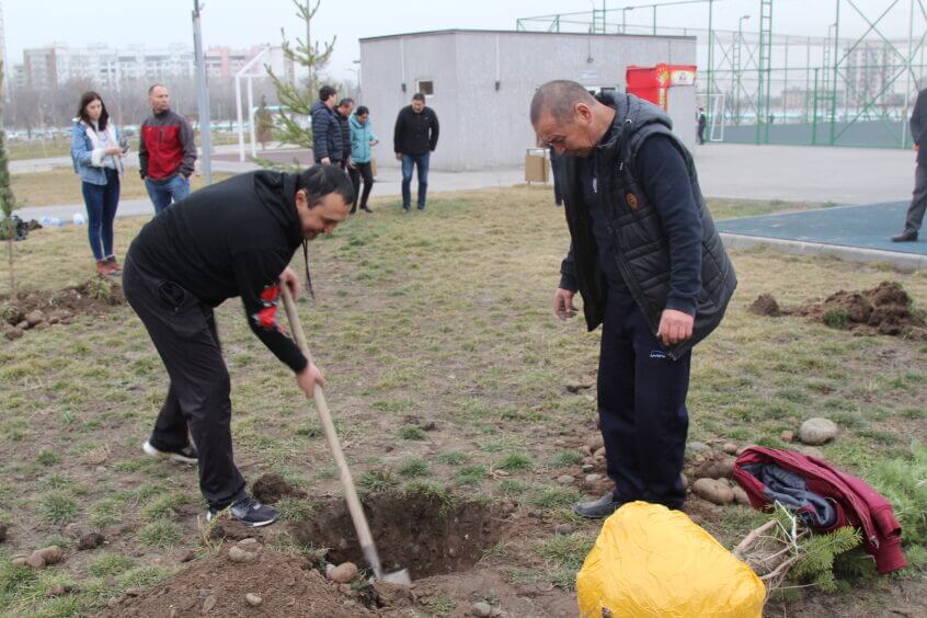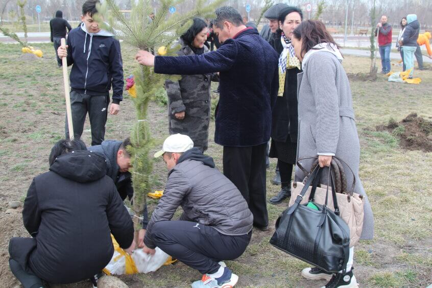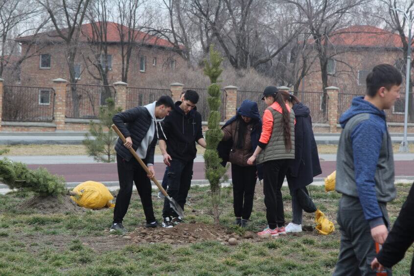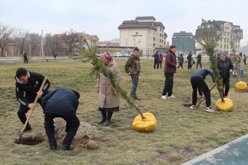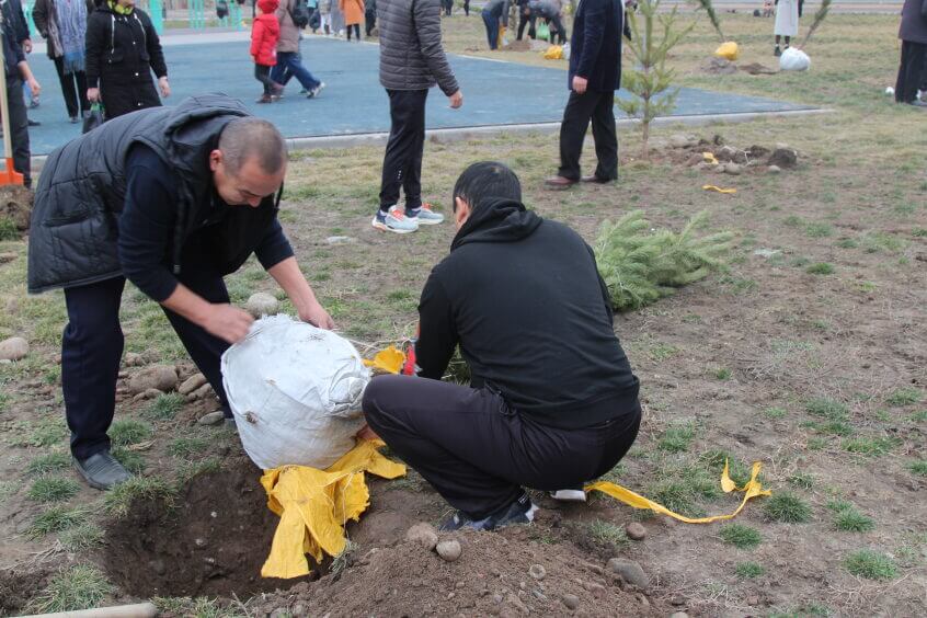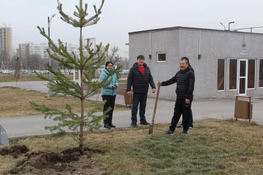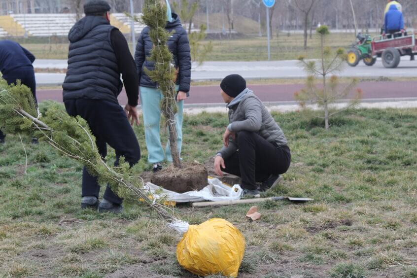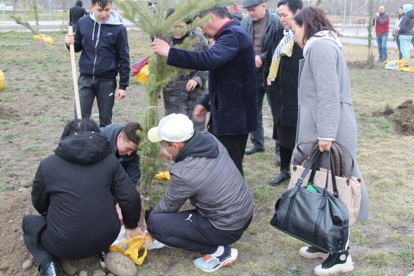 В парке им. Адинай Мырзабековой, студенты КГМА совместно с родителями посадили ели.