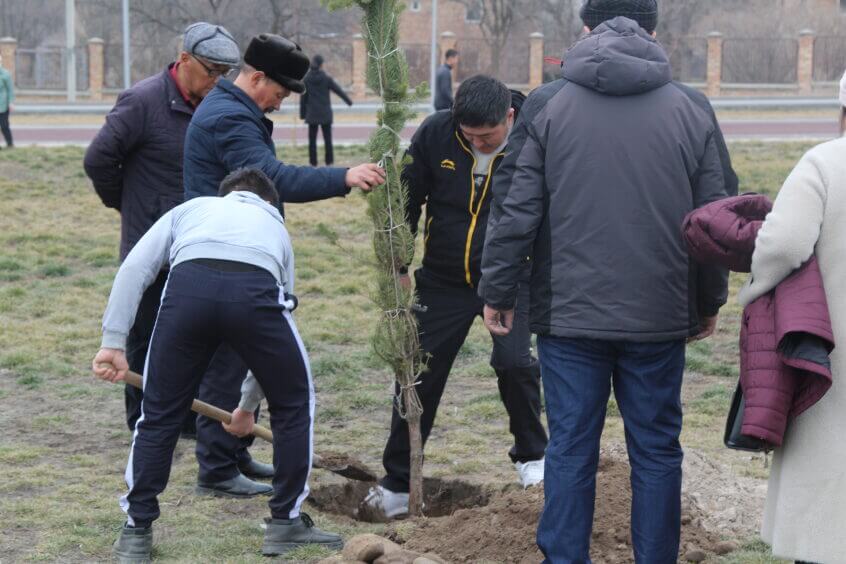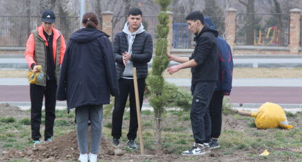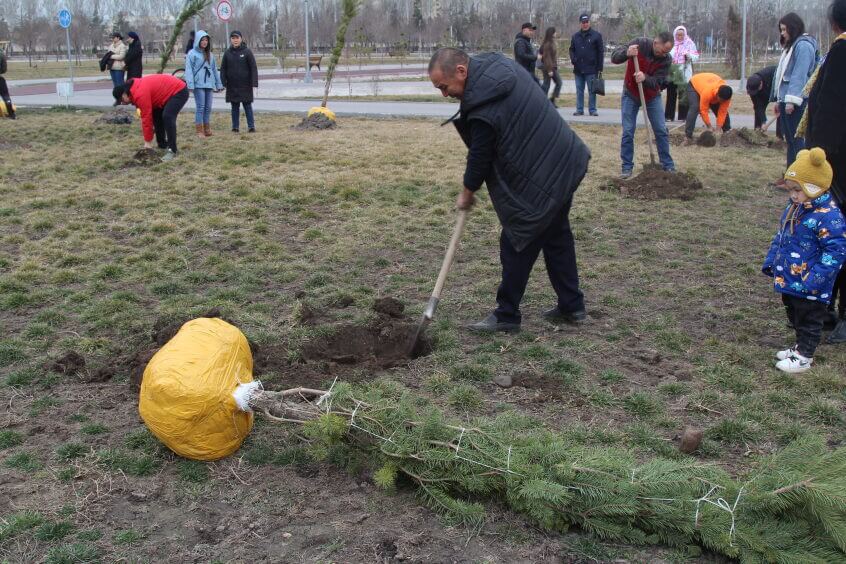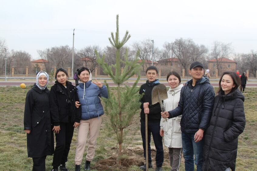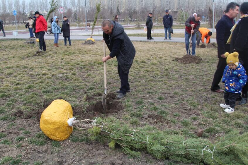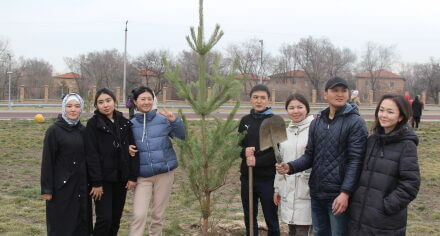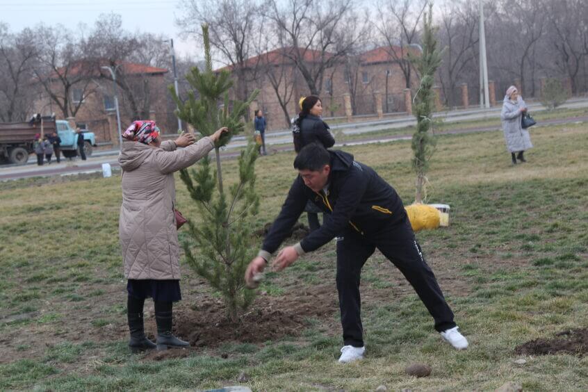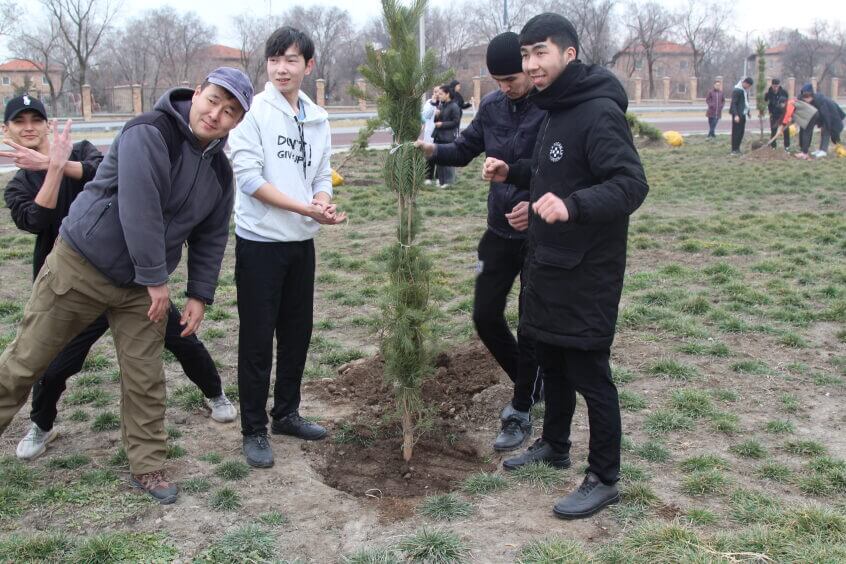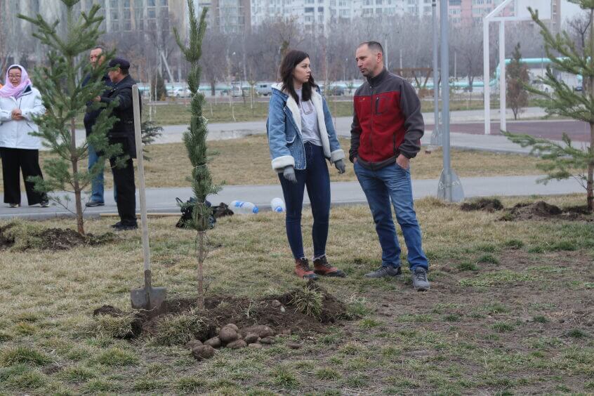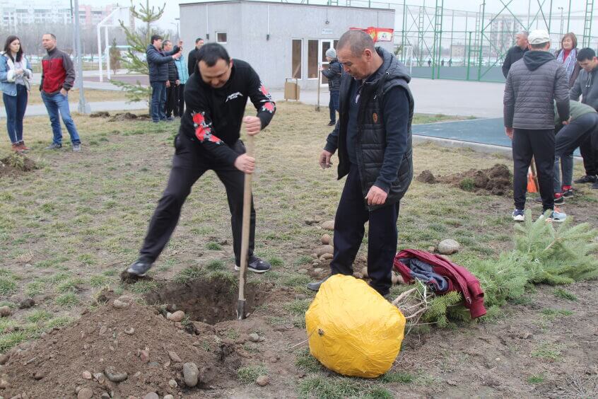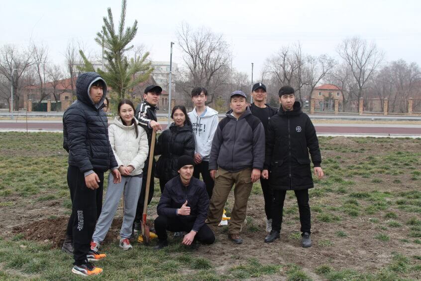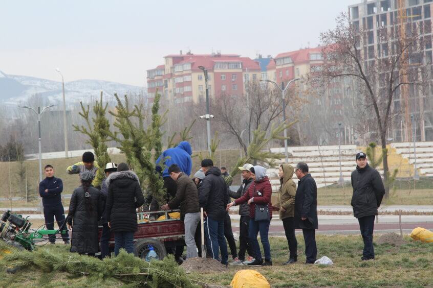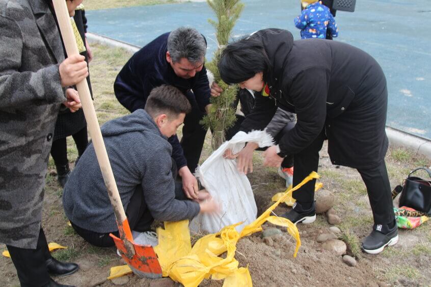 В парке им. Адинай Мырзабековой, студенты КГМА совместно с родителями посадили ели.