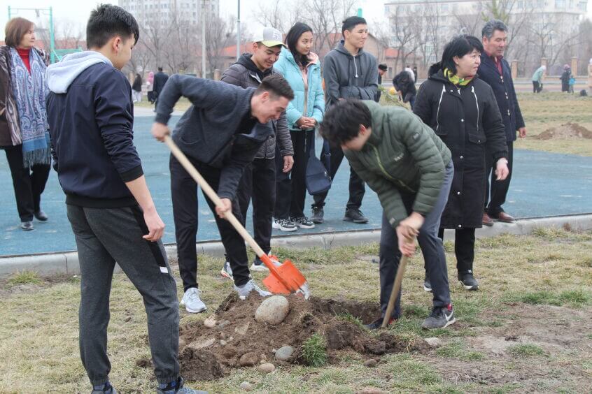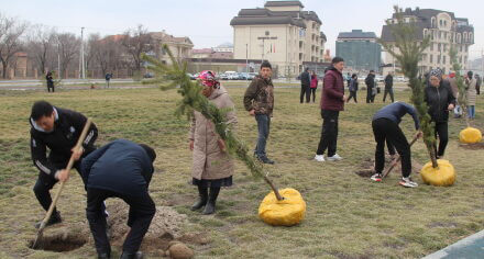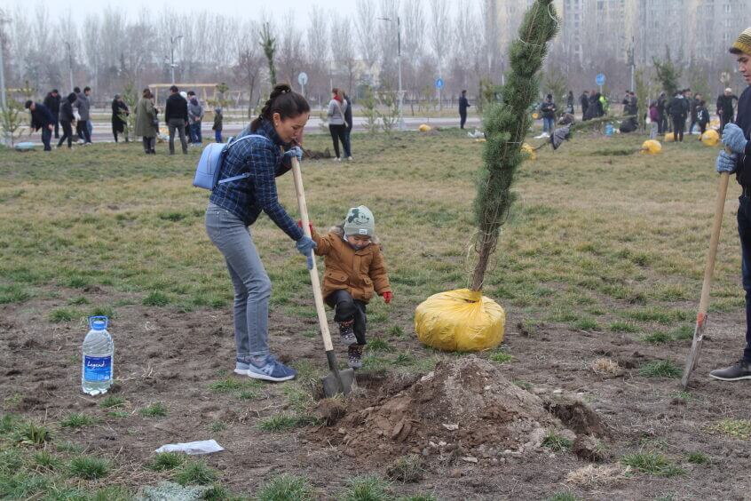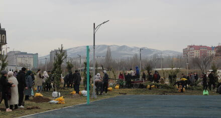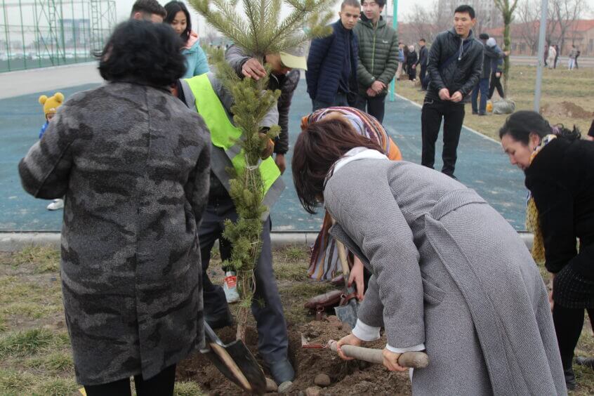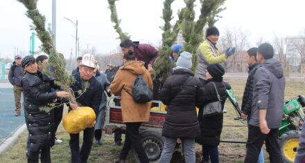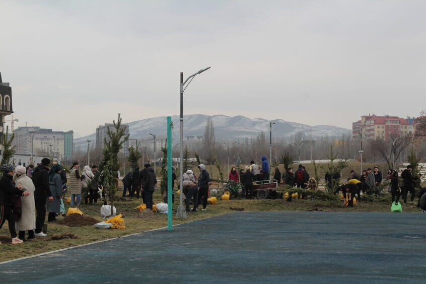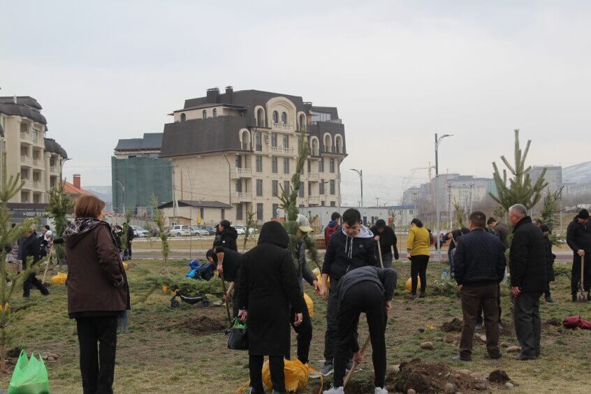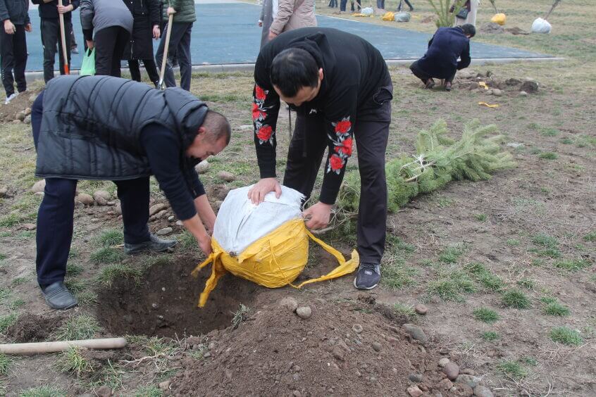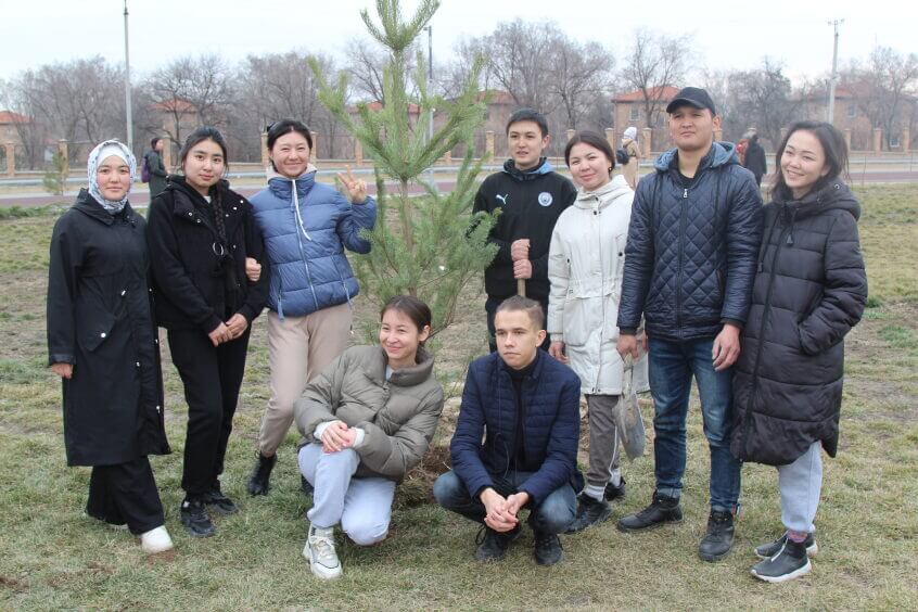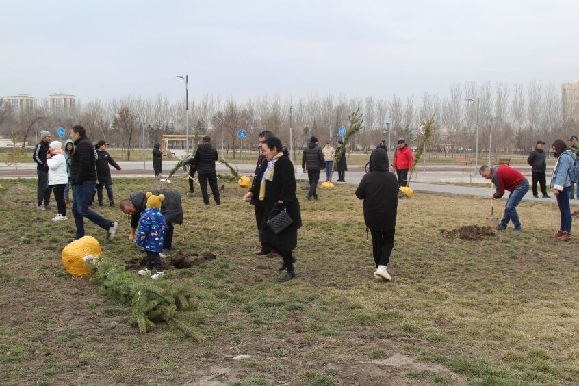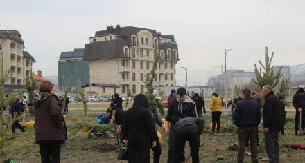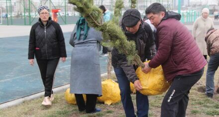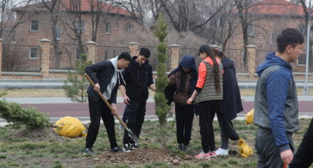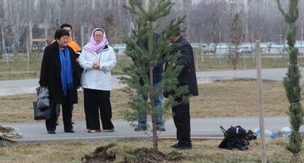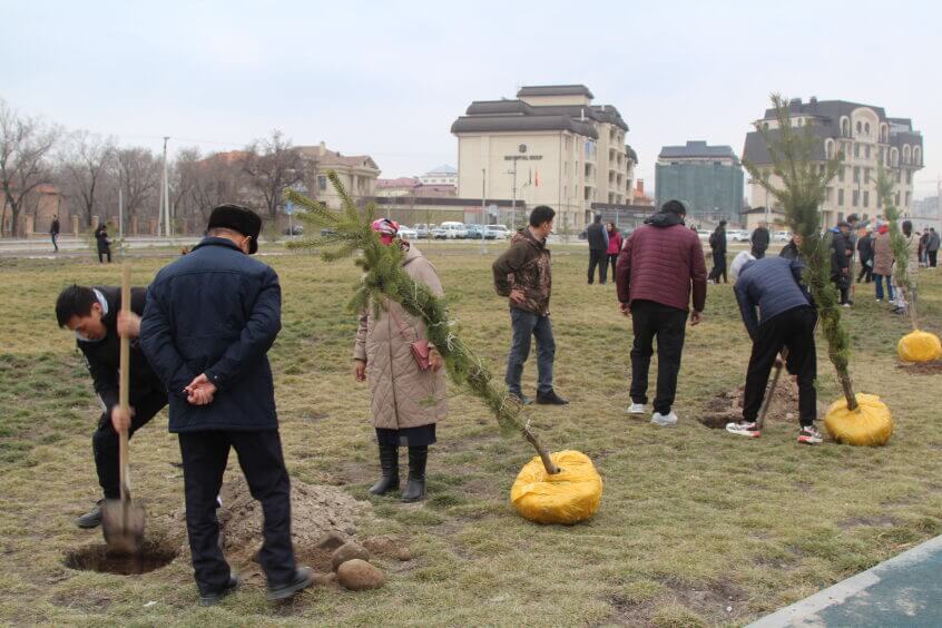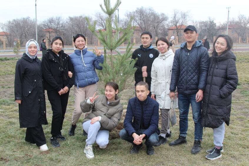 В парке им. Адинай Мырзабековой, студенты КГМА совместно с родителями посадили ели.