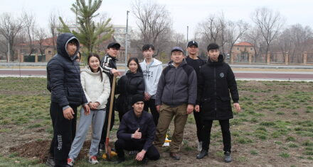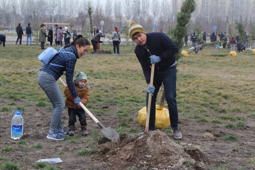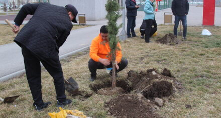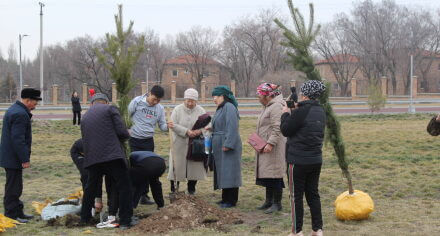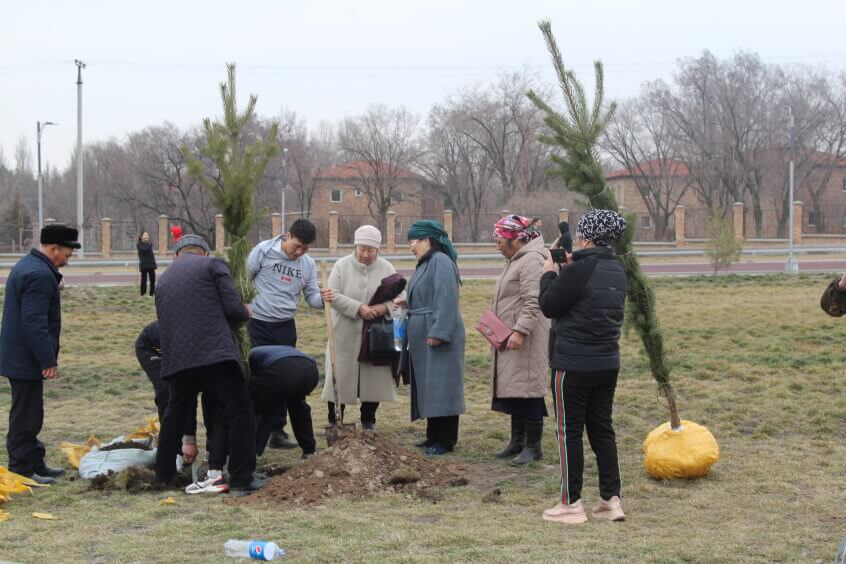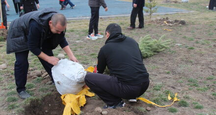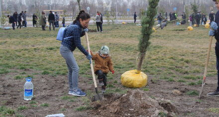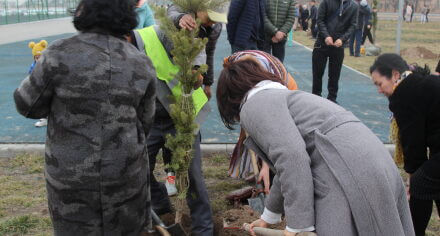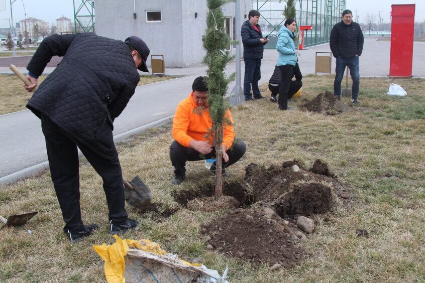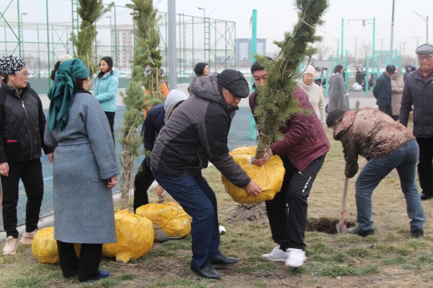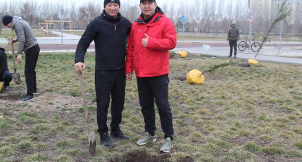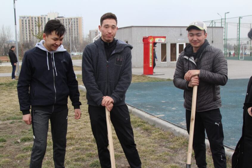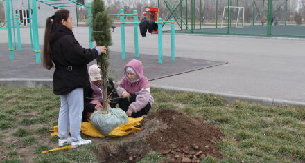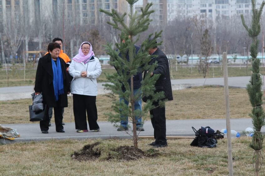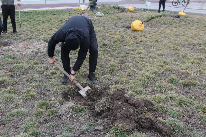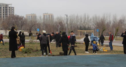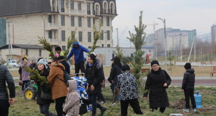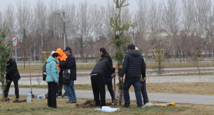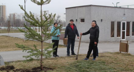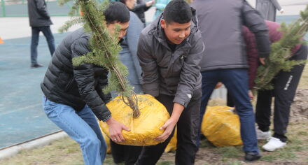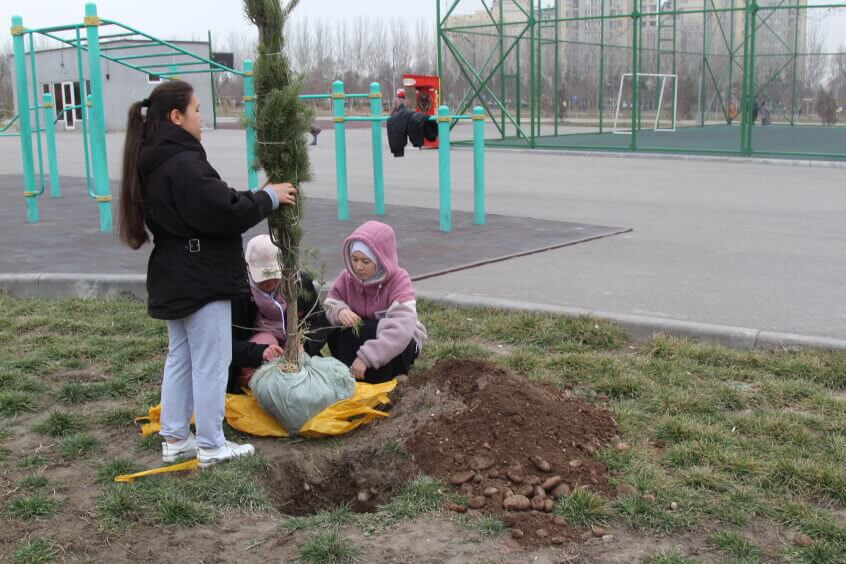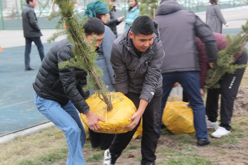 В парке им. Адинай Мырзабековой, студенты КГМА совместно с родителями посадили ели.