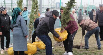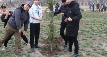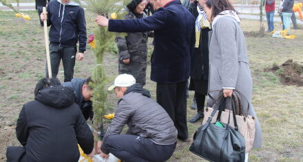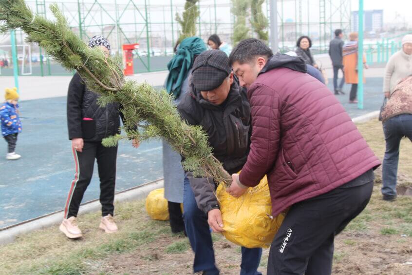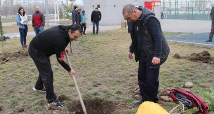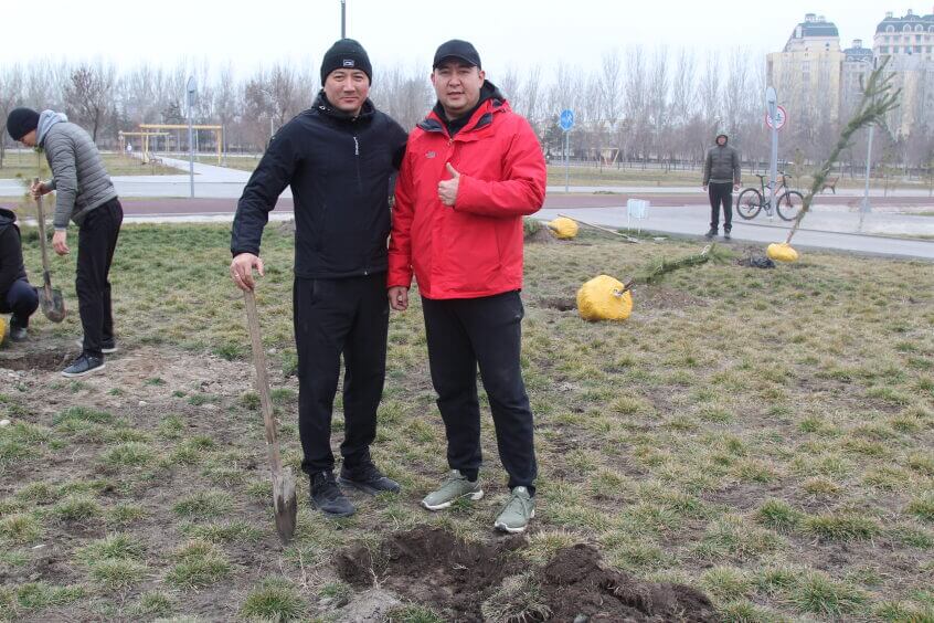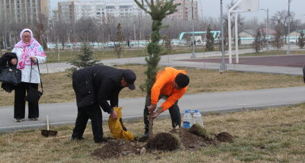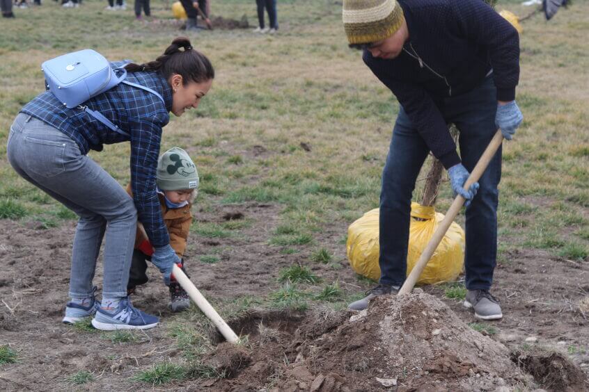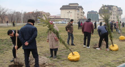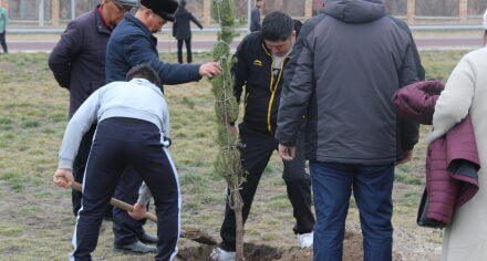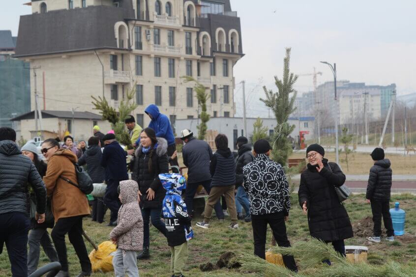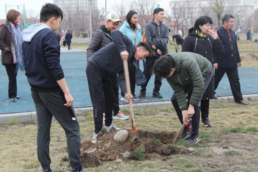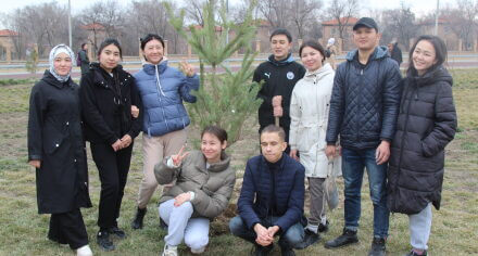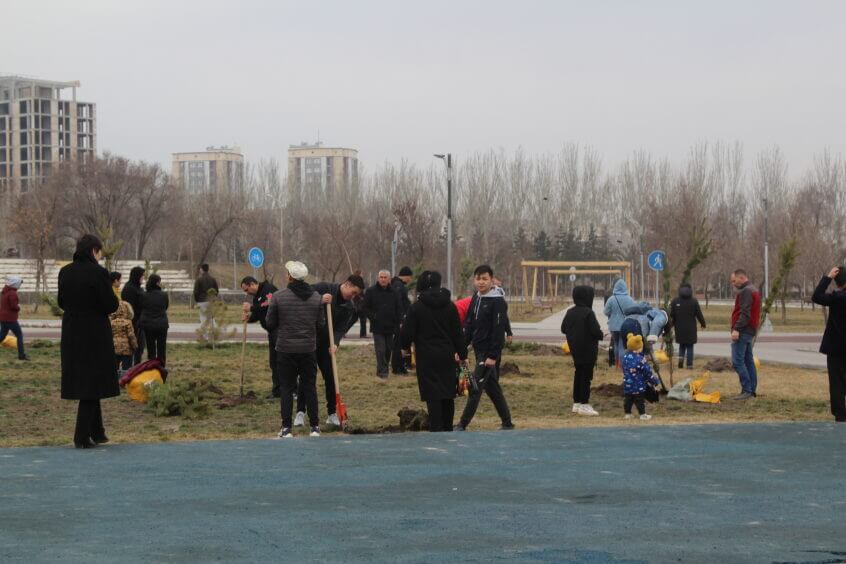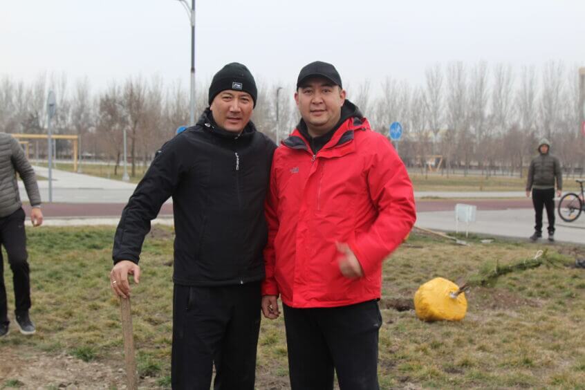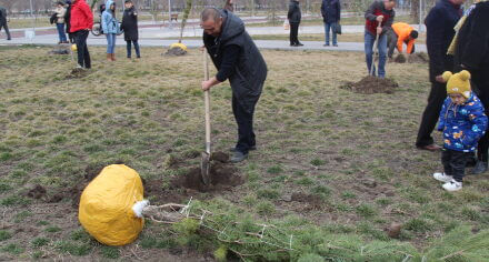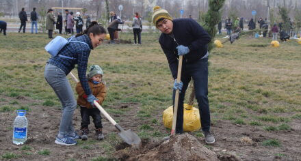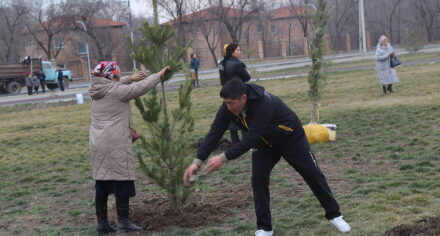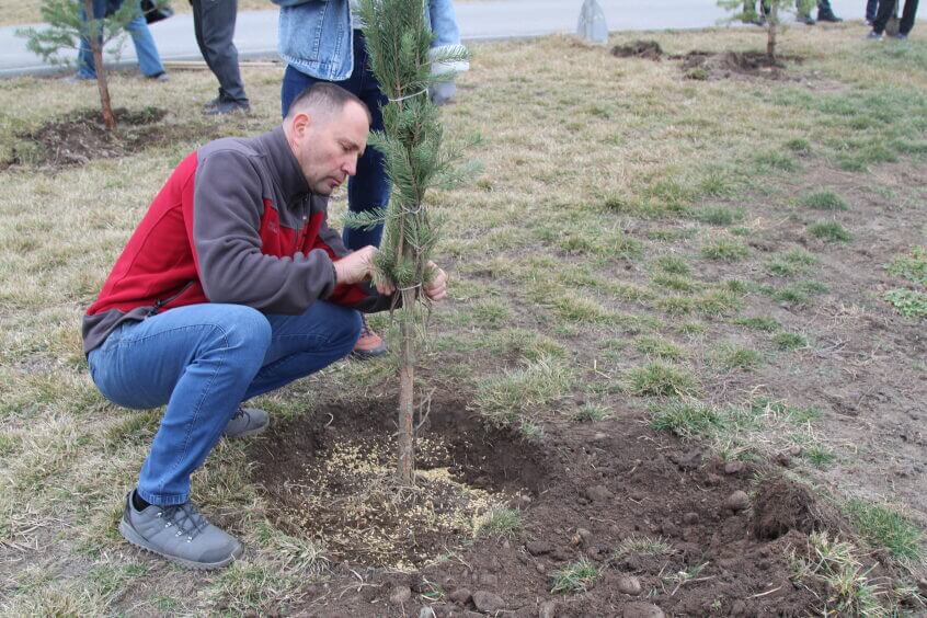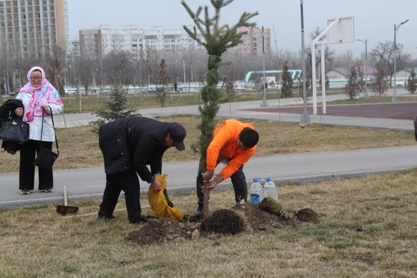 В парке им. Адинай Мырзабековой, студенты КГМА совместно с родителями посадили ели.