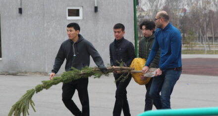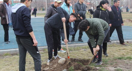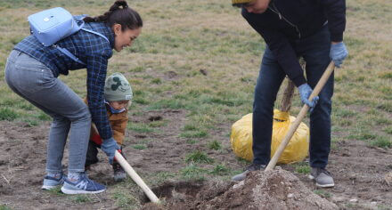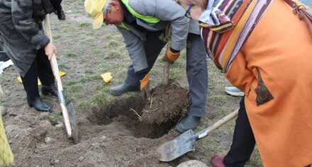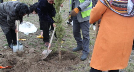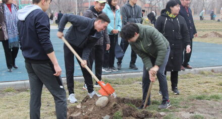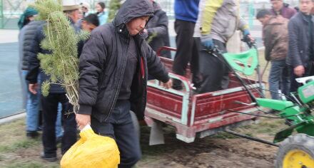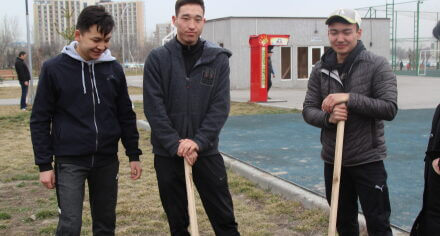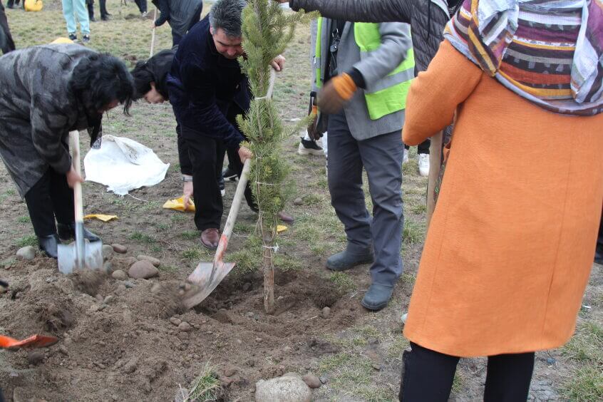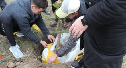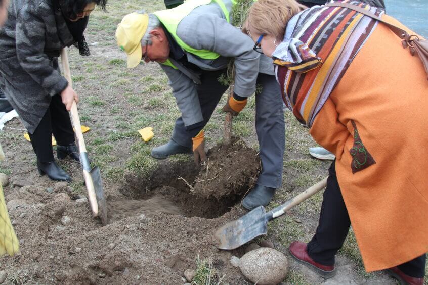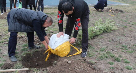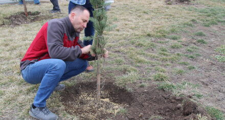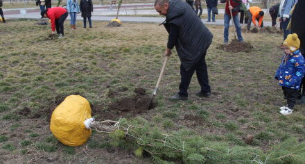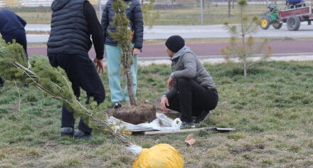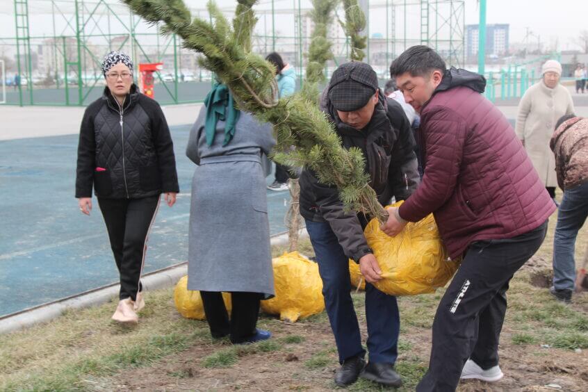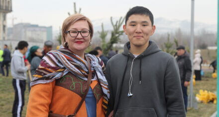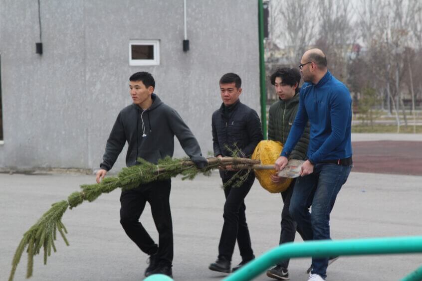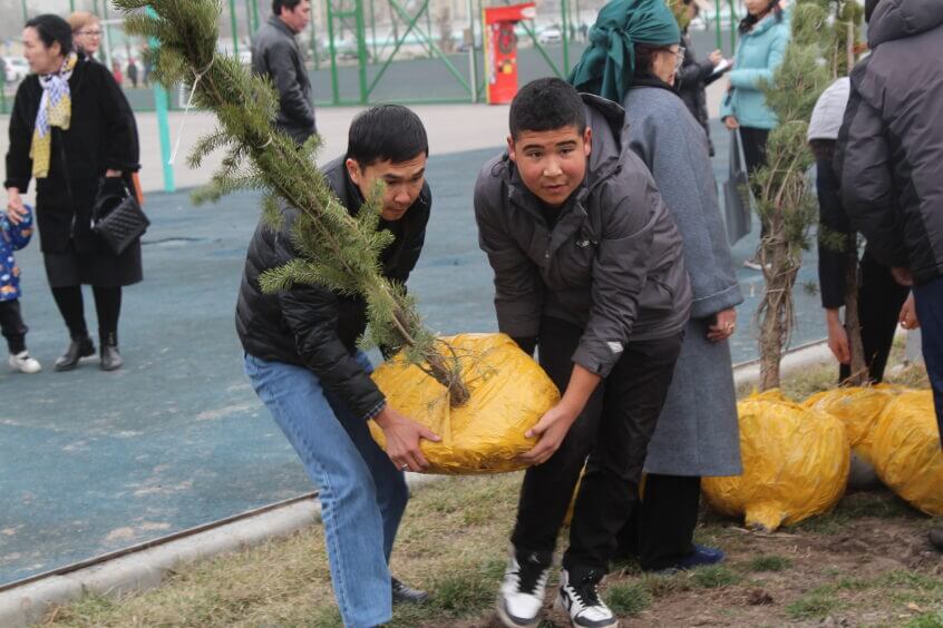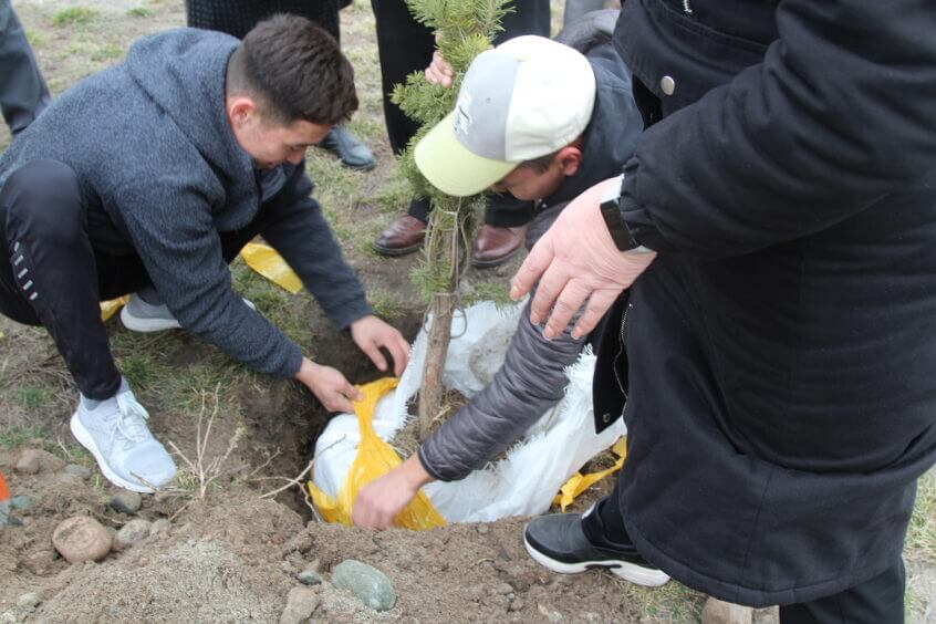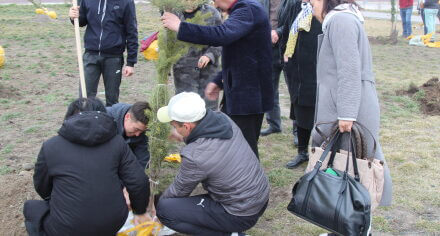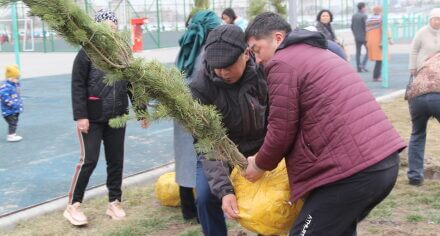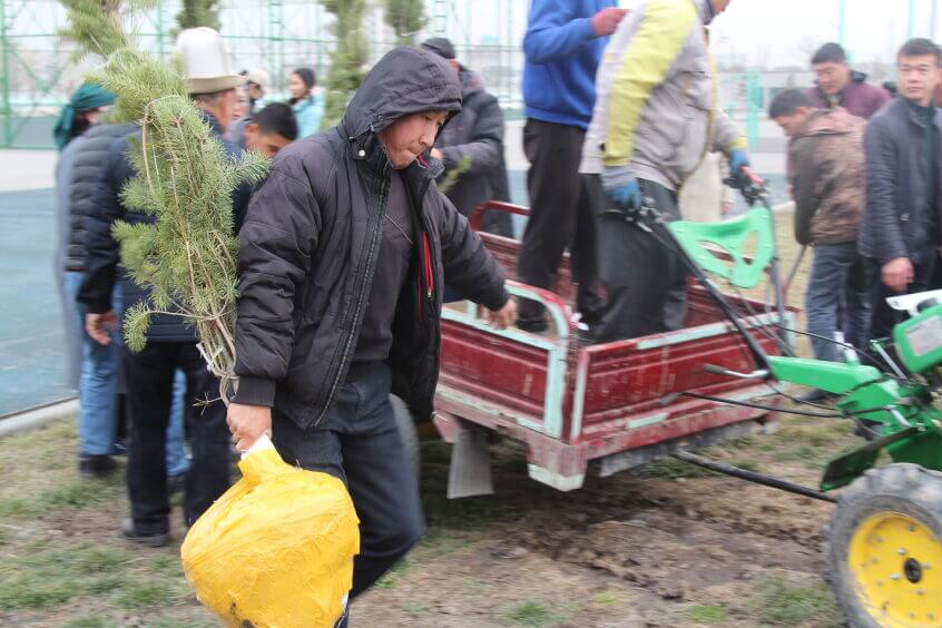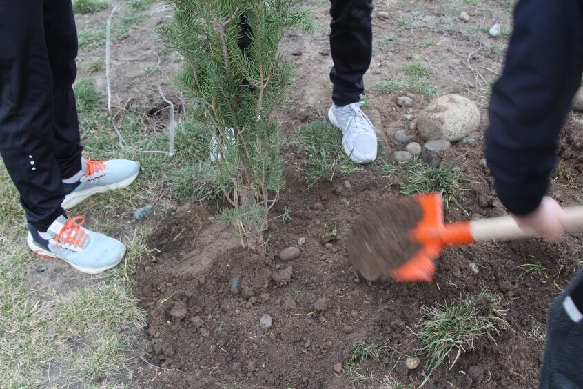 В парке им. Адинай Мырзабековой, студенты КГМА совместно с родителями посадили ели.